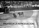 Corrida de toros de Manolo Bienvenida en beneficio del Ejercito (publico con brazo en alto, ruedo decorado en honor a Franco)