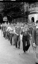Aniversario Toma de San Sebastián. Desfile militar y de Falange por las calles de Irún.