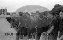 Fiesta del SEU, desfile, guardia mora, tribunas, retratos de Franco con camisa azul. Las mujeres del SEU.