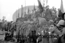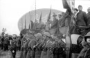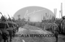 Condecoración de la unidad Italiana "Flechas negras" desfile de infantería y artillería. Franco, Generales Orgaz y Millán Astray. Tebit Arrumi y otros.