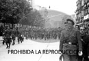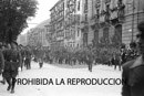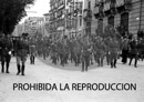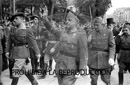 Imposición de la Laureada a Navarra. Concentración de las milicias del Ejército ( General Solchaga, jefe de las milicias de Navarra presidiendo desfile y conversando con Troncoso.) Foto del viejo requeté con el uniforme de la guerra carlista. Franco, Troncoso, Valera y Vigelmi.