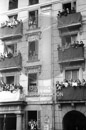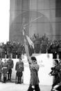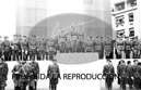 Imposición de la Laureada a Navarra. Concentración de las milicias del Ejército ( General Solchaga, jefe de las milicias de Navarra presidiendo desfile y conversando con Troncoso.) Foto del viejo requeté con el uniforme de la guerra carlista. Franco, Troncoso, Valera y Vigelmi.