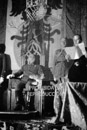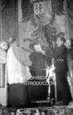 Jura del primer Consejo Nacional, Jura en la capilla de Franco y los consejeros. Consejeros en el patio. Embajador de Alemania Stohrer. Millán Astray en las sillas del coro. D. Raimundo Fernández Cuesta lee el Decreto de Unificación de Falange Española Tradicionalista y de las JONS