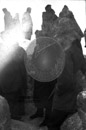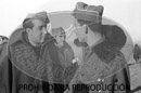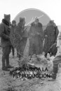 Víctor de la Serna, Infante de Baviera y García Sanchíz visitan el frente de Teruel, grupo alrededor de una hoguera con el General Aranda
