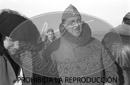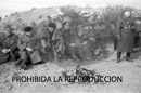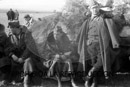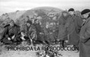 Víctor de la Serna, Infante de Baviera y García Sanchíz visitan el frente de Teruel, grupo alrededor de una hoguera con el General Aranda