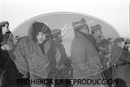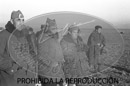 Víctor de la Serna, Infante de Baviera y García Sanchíz visitan el frente de Teruel, grupo alrededor de una hoguera con el General Aranda
