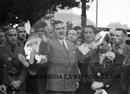 Gente huida a Francia vuelve a España (niños). Manuel Lambarri, Arrumi, Julián Troncoso (jefe de fronteras) Cartel de entrada a España en la frontera.