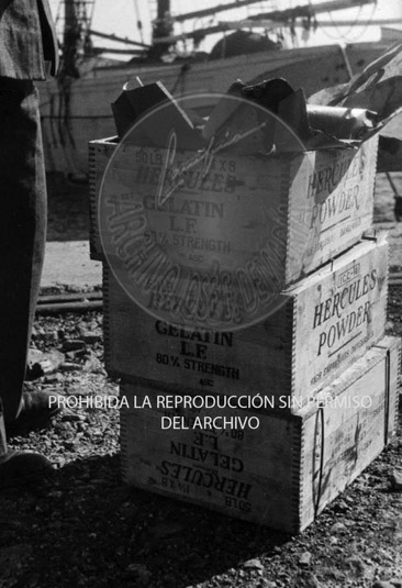 El puerto de Castellón tras la entrada de los nacionales. Camiones cargadois de dinamita para explotar.