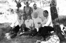 Franco en los parapetos (puesto de mando de la batalla del Ebro) comiendo en el campo con Kindelán.