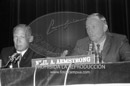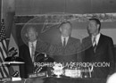 Los astronautas Armstrong, Aldring y Collins imparten una conferencia en el auditorio del Ministerio de Información y Turismo en diciembre de 1969