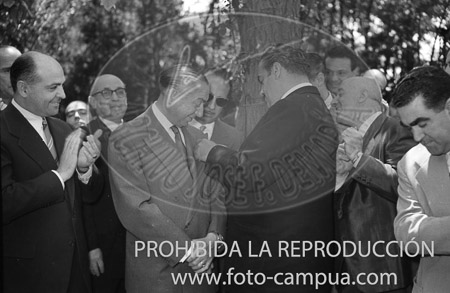 Chicote recibe la Medalla del Trabajo impuesta por el Ministro Girón de Velasco.