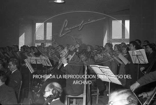 Ataulfo Argenta dirige un ensayo en el Teatro Real de Madrid.