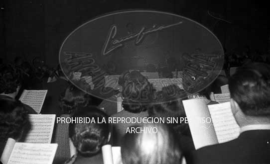 Ataulfo Argenta dirige un ensayo en el Teatro Real de Madrid.