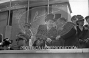 Desfile de la Victoria. Franco saludando al cuerpo diplomático alemán y japonés. Dª Carmen saludando.