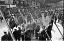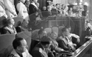 Sesion plenaria en Las Cortes presidida por el Jefe del Estado, Francisco Franco y manifestación de apoyo en el exterior de Las Cortes