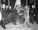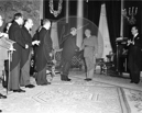 Franco recibe a los periodistas que le entregan el Primer Carnet de Periodismo.