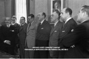 Toma de posesión del nuevo Delegado del Servicio Nacional del Trigo, D. Miguel Cavero ante el Ministro de Agricultura Sr. Cavestani y con asistencia del Ministro de Comercio Sr. Arburúa.