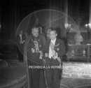 Recepción en el Palacio de oriente por el XIII aniversario de la Victoria. Franco con Millán Astray
