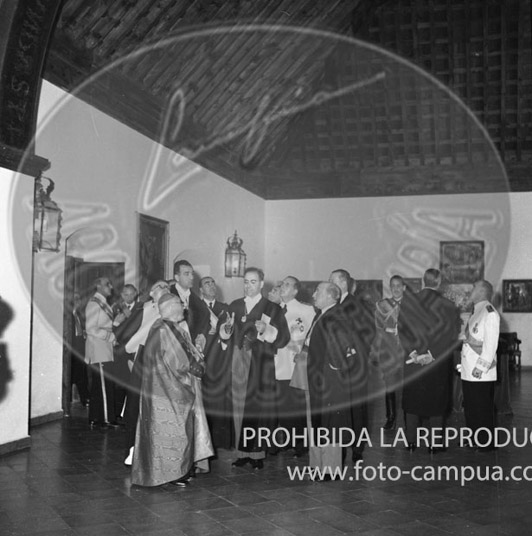 Franco es investido Doctor Honoris Causa por la Univarsidad de Salamanca, Franco en el patio de las escuelas menores y comida en el claustro