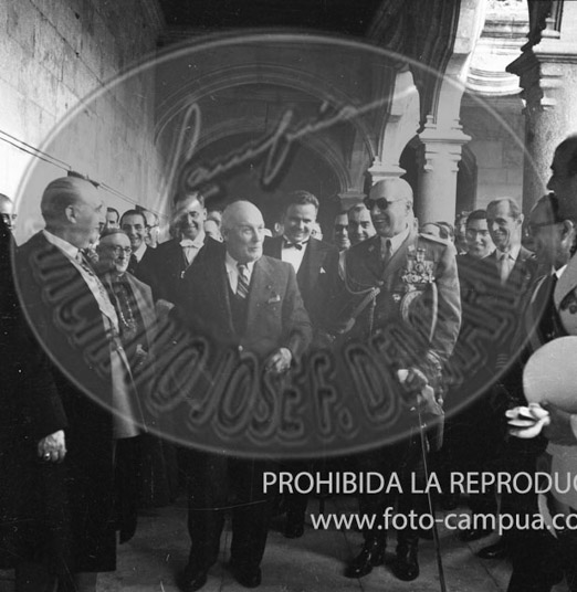Franco es investido Doctor Honoris Causa por la Univarsidad de Salamanca, Franco en el patio de las escuelas menores y comida en el claustro
