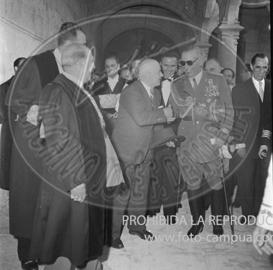 Franco es investido Doctor Honoris Causa por la Univarsidad de Salamanca, Franco en el patio de las escuelas menores y comida en el claustro