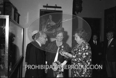 Dª Carmen Polo de Franco visita una exposición de relojes.