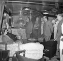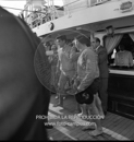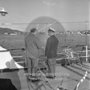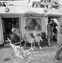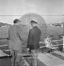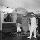Franco, en el Azor, entrega la bandera de vencedor al patrón de la trainera de Lasarte, ganadora de las regatas, D. Claudio Echevarría. Asisten el Ministro de AA.EE., Marina, la Condesa de Casa de Loja, las Sras. De Nieto Antúnez, Castañón y Lapuente.