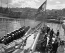 El Rey de Jordania Abdallah I visita a España. La Coruña, embarque en el Miguel de Cervantes.