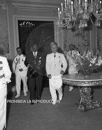 El Presidente Tubman llega al Palacio de Ayete para ser recibido por Franco