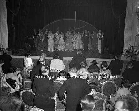 Cena de gala ofrecida en el Palacio de El Pardo, con motivo de la visita de la esposa del Presidente Oria del Perú, Dª Maria Delgado Romero.