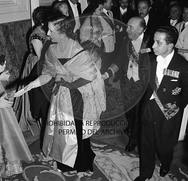Feisal II de Arabia Saudí visita oficialmente España, cena de gala en el Palacio de Oriente.
