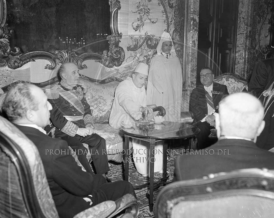 Comida de gala en el Palacio de Oriente en honor de Mohamed V.