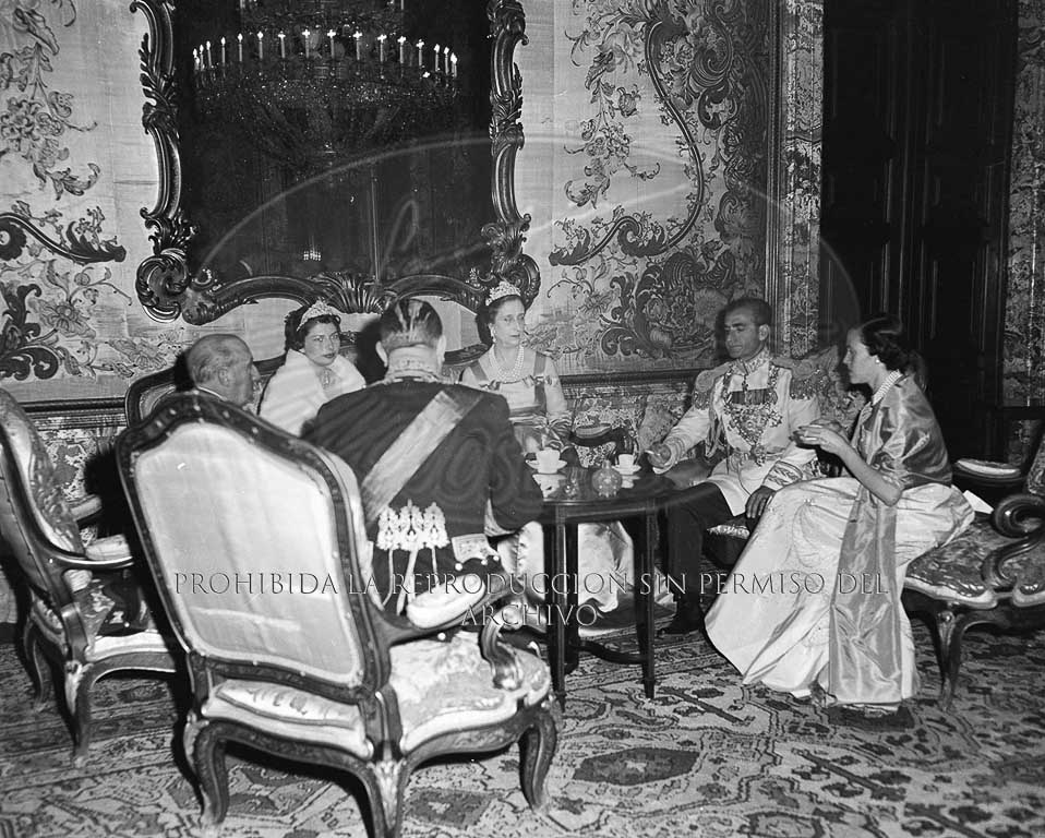 Cena de gala en el Palacio de Oriente en honor del Sha de Persia, Reza Pahlavi y su esposa Soraya Estafandrani