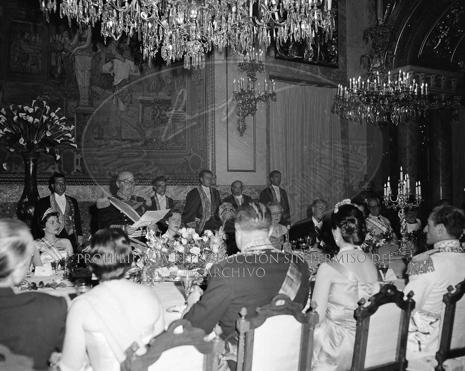 Cena de gala en el Palacio de Oriente en honor del Sha de Persia, Reza Pahlavi y su esposa Soraya Estafandrani