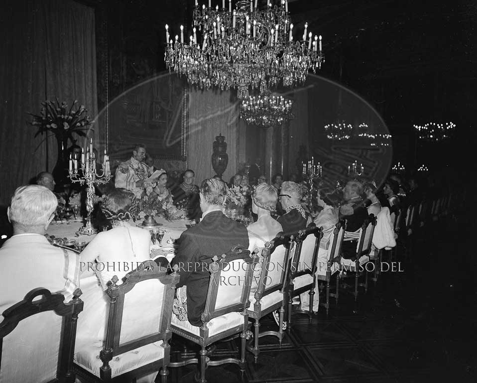 Cena de gala en el Palacio de Oriente en honor del Sha de Persia, Reza Pahlavi y su esposa Soraya Estafandrani