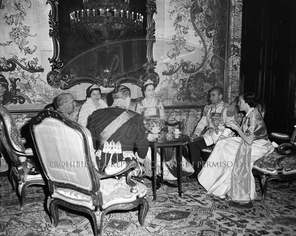 Cena de gala en el Palacio de Oriente en honor del Sha de Persia, Reza Pahlavi y su esposa Soraya Estafandrani