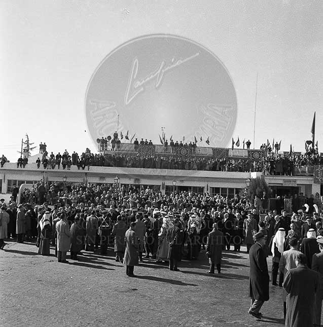El Rey Saud llega al aeropuerto de Barajas donde es recibido por el Jefe del Estado Francisco Franco.