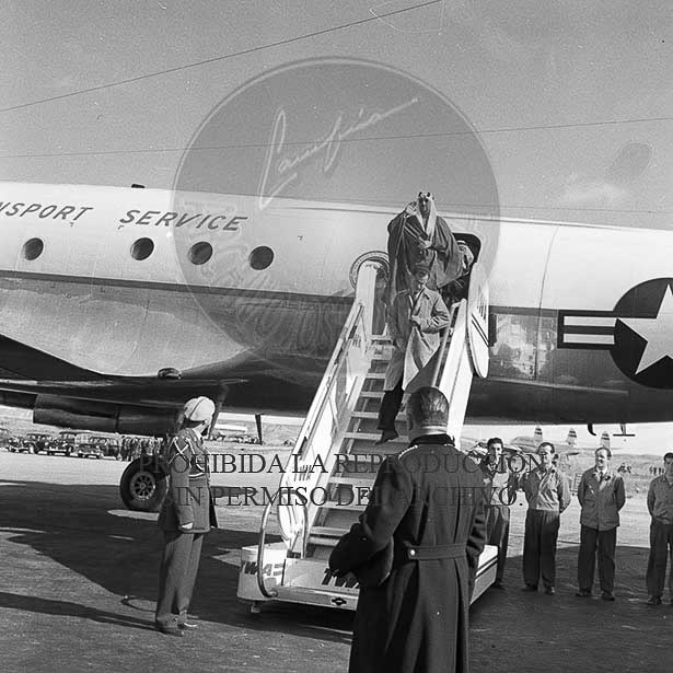 El Rey Saud llega al aeropuerto de Barajas donde es recibido por el Jefe del Estado Francisco Franco.