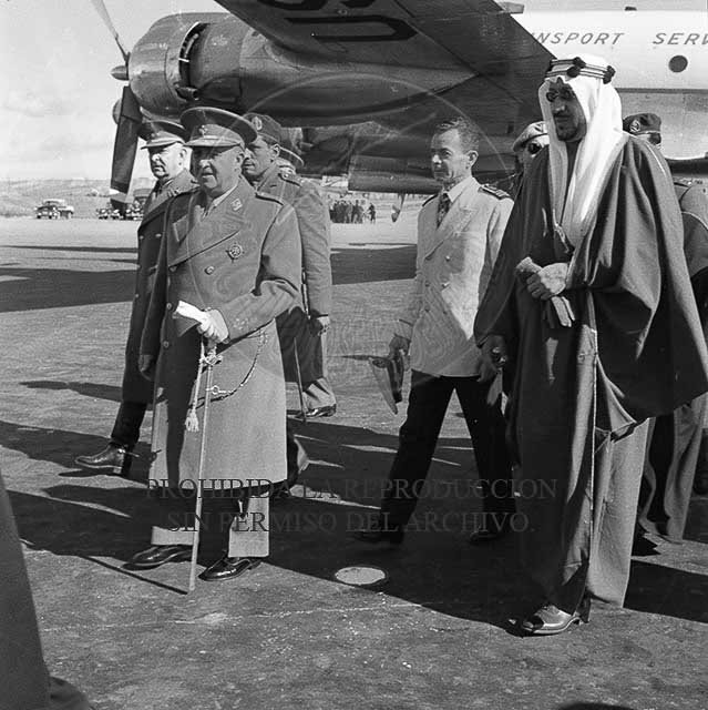 El Rey Saud llega al aeropuerto de Barajas donde es recibido por el Jefe del Estado Francisco Franco.