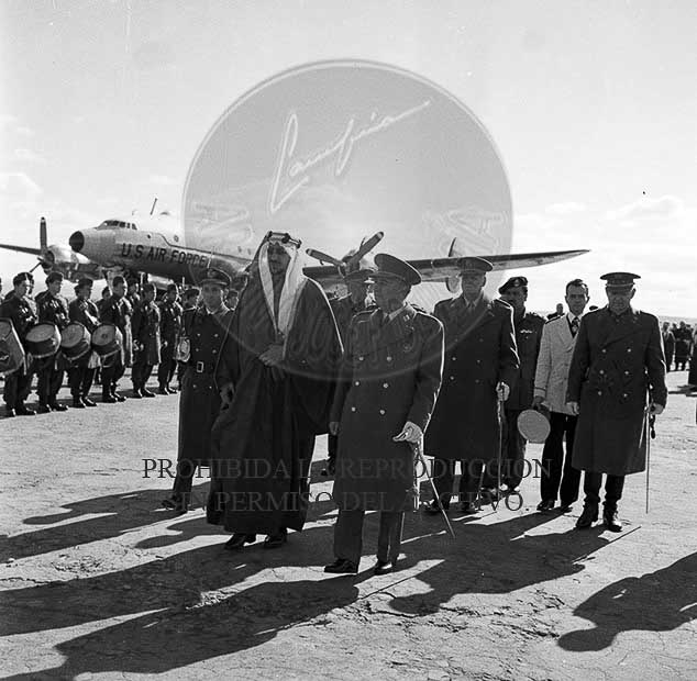 El Rey Saud llega al aeropuerto de Barajas donde es recibido por el Jefe del Estado Francisco Franco.