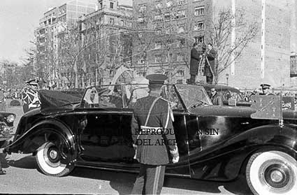 El Rey Saud recorre las calles de Madrid en coche descubierto tras su llegada a España en visita oficial.