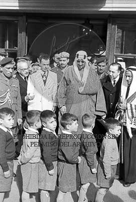 El Rey Saud es visita el horfanato de El Pardo, en la ciudad de la beneficencia, en Carabanchel, Madrid.