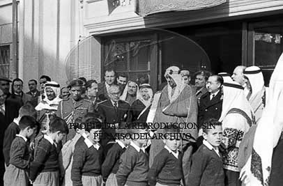 El Rey Saud es visita el horfanato de El Pardo, en la ciudad de la beneficencia, en Carabanchel, Madrid.