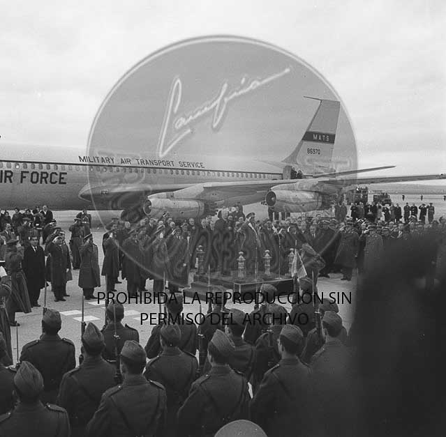Llegada a Barajas del Presidente Eisenhower. Desfile en el Paseo de la Castellana.