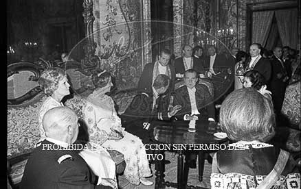 Cena de gala en el Palacio de Oriente en honor del Vicepresidente Nixon. Asisten los Principes de España.