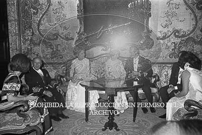 Cena de gala en el Palacio de Oriente en honor del Vicepresidente Nixon. Asisten los Principes de España.