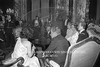 Cena de gala en el Palacio de Oriente en honor del Vicepresidente Nixon. Asisten los Principes de España.