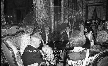 Cena de gala en el Palacio de Oriente en honor del Vicepresidente Nixon. Asisten los Principes de España.