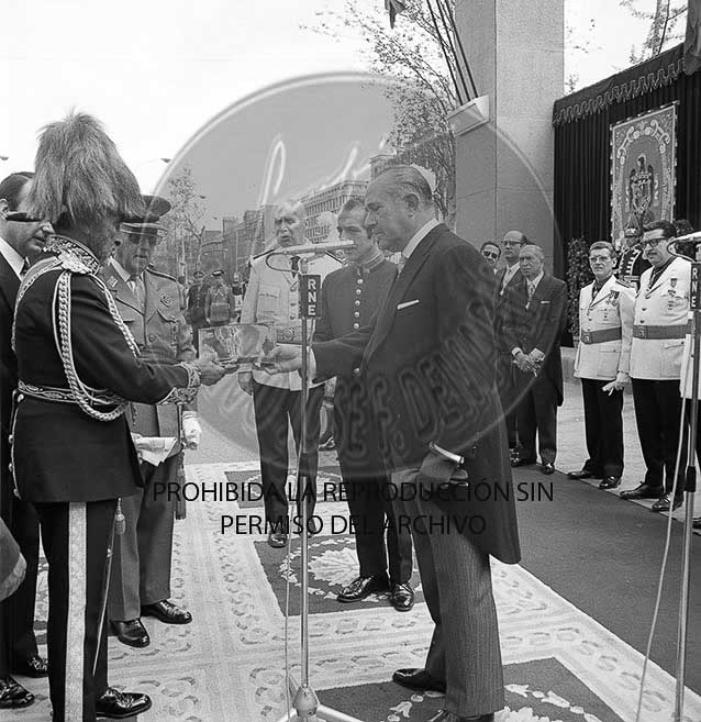 Haile Selasie, Emperador de Etiopia, El Negus, visita oficialmente España. Entrega de las llaves de Madrid por el alcalde Sr. Arias Navarro, recepcion en El Pardo