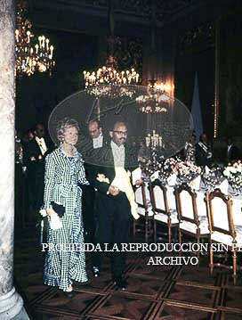 Haile Selasie, emperador de Etiopia, El Negus, visita oficialmente España. Cena de gala en el Palacio de Oriente, con asistencia de los Principes de España.